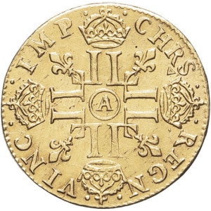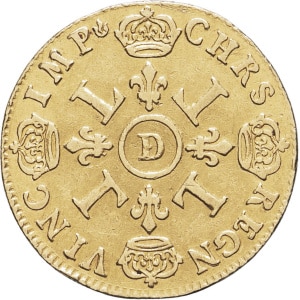FRANCE / CAPÉTIENS - FRANCE / ROYAL Louis XIV (1643-1715). Double louis d’or aux quatre L, flan neuf 1698, D, …