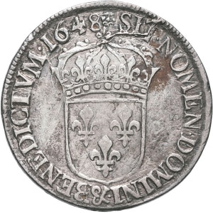 FRANCE / CAPÉTIENS - FRANCE / ROYAL Louis XIV (1643-1715). Écu à la mèche longue 1647, H, La Rochelle.…