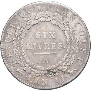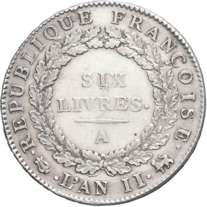 FRANCE - FRANCE Convention (1792-1795). Écu de 6 livres FRANÇOISE 1793 - An II, A, Paris.…