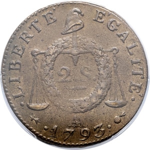 FRANCE - FRANCE Convention (1792-1795). 2 sols à la balance daté 1793 - An II, AA, Metz.…