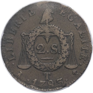 FRANCE - FRANCE Convention (1792-1795). 2 sols à la balance daté 1793 - An II, T, Nantes.…
