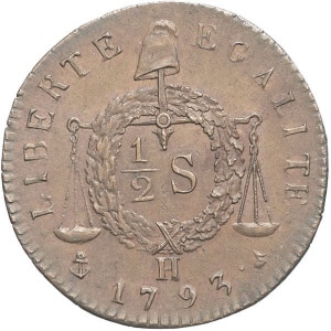 FRANCE - FRANCE Convention (1792-1795). 1/2 sol aux balances, refrappe postérieure 1793 - An II [c.1848], H, L…