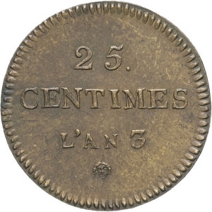FRANCE - FRANCE Convention (1792-1795). Essai de 25 centimes Dupré An 3 (1794-1795), Paris.…
