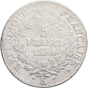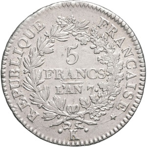 FRANCE - FRANCE Consulat (1799-1804). 5 francs Union et Force An 7 (1798), K, Bordeaux.…