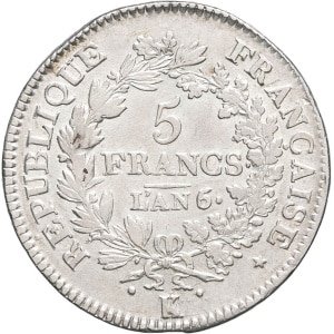 FRANCE - FRANCE Directoire (1795-1799). 5 francs Union et Force An 6 (1799), K, Bordeaux.…