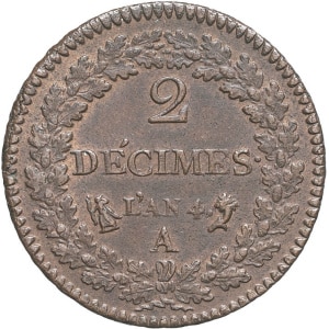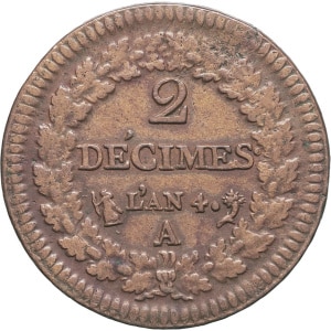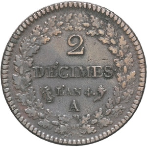FRANCE - FRANCE Directoire (1795-1799). 2 décimes Dupré An 4 (1795), A, Paris.
