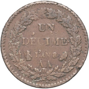 FRANCE - FRANCE Directoire (1795-1799). Un décime Dupré An 8 (1799), AA, Metz.
