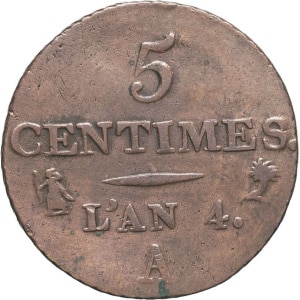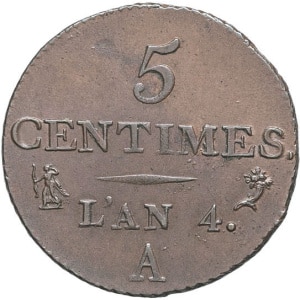 FRANCE - FRANCE Directoire (1795-1799). Cinq centimes Dupré, petit module An 4 (1795), A, Paris.…