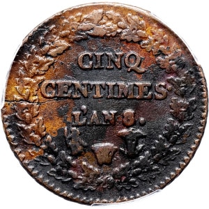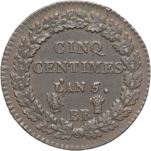 FRANCE - FRANCE Directoire (1795-1799). Cinq centimes Dupré, grand module An 8/5 (1799), W/T, Lille.…