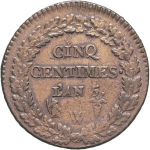 FRANCE - FRANCE Directoire (1795-1799). Cinq centimes Dupré, grand module An 5 (1796), W, Lille.…
