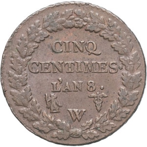 FRANCE - FRANCE Directoire (1795-1799). Cinq centimes Dupré, grand module An 8 (1799), W, Lille.…