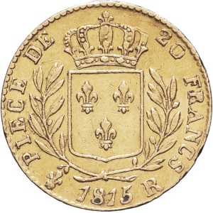 FRANCE - FRANCE Louis XVIII (1814-1824). 20 francs buste habillé 1815, R, Londres.…