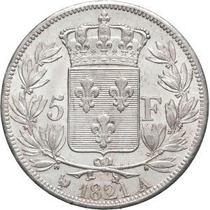 FRANCE - FRANCE Louis XVIII (1814-1824). 5 francs buste nu 1821, A, Paris.