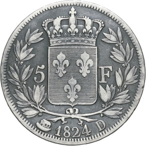 FRANCE - FRANCE Louis XVIII (1814-1824). 5 francs buste nu 1824, D, Lyon.