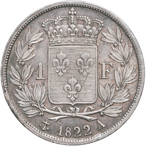 FRANCE - FRANCE Louis XVIII (1814-1824). 1 franc 1822, A, Paris.