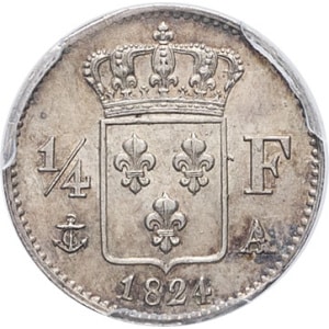FRANCE - FRANCE Louis XVIII (1814-1824). 1/4 franc 1824, A, Paris.