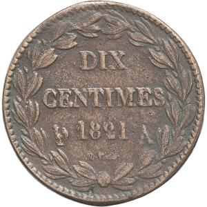 FRANCE - FRANCE Louis XVIII (1814-1824). Essai de dix centimes, premier revers 1821 (fonte postérieure).…