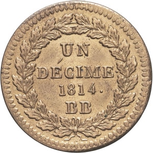 FRANCE - FRANCE Louis XVIII (1814-1824). Un décime à l’L couronnée, refrappe 1814, BB, Strasbourg.…