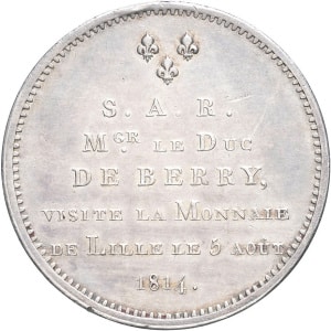 FRANCE - FRANCE Louis XVIII (1814-1824). Module de 5 francs, visite du Duc de Berry à la Monnaie de Lille 1814…
