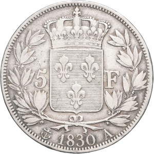 FRANCE - FRANCE Charles X (1824-1830). 5 francs, 2e type 1830, D, Lyon.