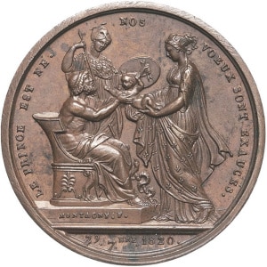 FRANCE - FRANCE Henri V (1820-1883). Médaille, le duc et la duchesse de Berry, naissance du duc de Bordeaux, p…