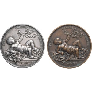 FRANCE - FRANCE Henri V (1820-1883). Paire de médailles, le duc et la duchesse de Berry, naissance du duc de B…
