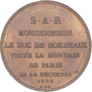 FRANCE - FRANCE Henri V (1820-1883). Module de 5 francs, visite de la Monnaie de Paris par le duc de Bordeaux …