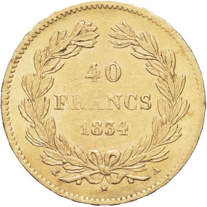 FRANCE - FRANCE Louis-Philippe Ier (1830-1848). 40 francs tête laurée 1834, A, Paris.…