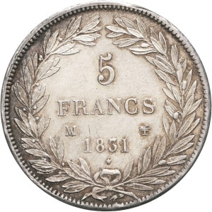 FRANCE - FRANCE Louis-Philippe Ier (1830-1848). 5 francs tête nue, tranche en creux 1831, MA, Marseille.…
