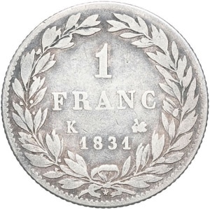FRANCE - FRANCE Louis-Philippe Ier (1830-1848). 1 franc tête nue 1831, K, Bordeaux.…