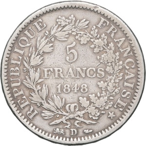 FRANCE - FRANCE IIe République (1848-1852). 5 francs Hercule 1848, D, Lyon.