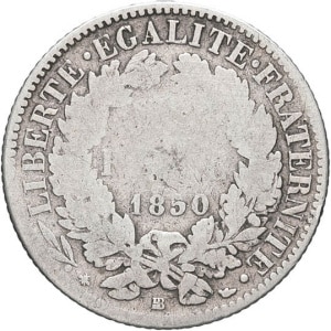 FRANCE - FRANCE IIe République (1848-1852). 1 franc Cérès 1850, BB, Strasbourg.…