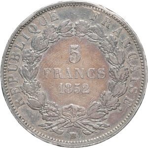 FRANCE - FRANCE IIe République (1848-1852). 5 francs Louis-Napoléon Bonaparte 1852, BB, Strasbourg.…