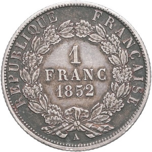 FRANCE - FRANCE IIe République (1848-1852). 1 franc Louis-Napoléon Bonaparte 1852, A, Paris.…