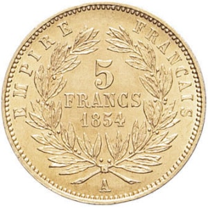 FRANCE - FRANCE Second Empire / Napoléon III (1852-1870). 5 francs tête nue petit module, tranche lisse 1854, …