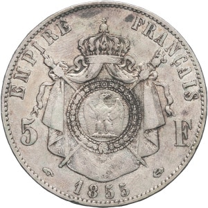 FRANCE - FRANCE Second Empire / Napoléon III (1852-1870). 5 francs tête nue 1855, A, Paris.…