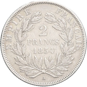 FRANCE - FRANCE Second Empire / Napoléon III (1852-1870). 2 francs tête nue 1854, A, Paris.…
