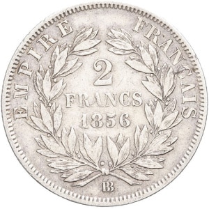 FRANCE - FRANCE Second Empire / Napoléon III (1852-1870). 2 francs tête nue 1856, BB, Strasbourg.…