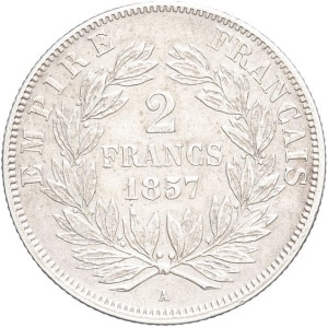 FRANCE - FRANCE Second Empire / Napoléon III (1852-1870). 2 francs tête nue 1857, A, Paris.…