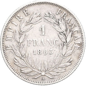 FRANCE - FRANCE Second Empire / Napoléon III (1852-1870). 1 franc tête nue 1863, A, Paris.…