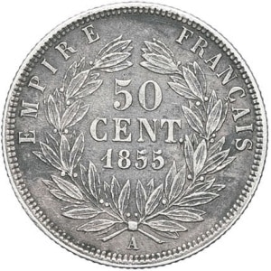 FRANCE - FRANCE Second Empire / Napoléon III (1852-1870). 50 centimes tête nue 1855, A, Paris.…