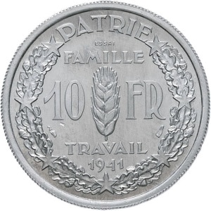 FRANCE - FRANCE État Français (1940-1944). Essai de 10 francs Pétain en aluminium par Simon 1941, Paris.…