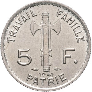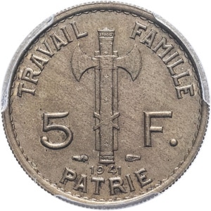 FRANCE - FRANCE État Français (1940-1944). 5 francs Pétain 1941, Paris.