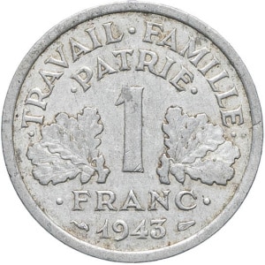 FRANCE - FRANCE État Français (1940-1944). 1 franc Bazor, flan splitté séparé avant la frappe 1943, Paris.…
