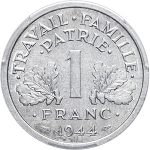 FRANCE - FRANCE État Français (1940-1944). 1 franc Bazor 1944, C, Castelsarrasin.…