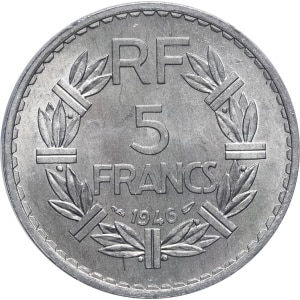 FRANCE - FRANCE IVe République (1947-1958). 5 francs Lavrillier en aluminium 1946, Paris.…
