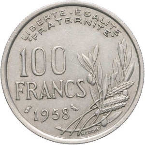 FRANCE - FRANCE Ve République (1958 à nos jours). 100 francs Cochet, avec différent chouette 1958, Paris.…