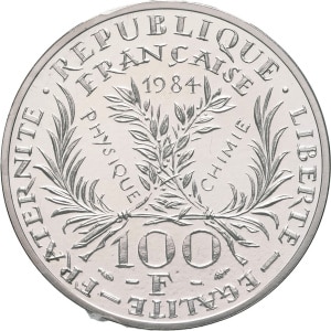 FRANCE - FRANCE Ve République (1958 à nos jours). Piéfort de 100 francs Marie Curie 1984, Pessac.…