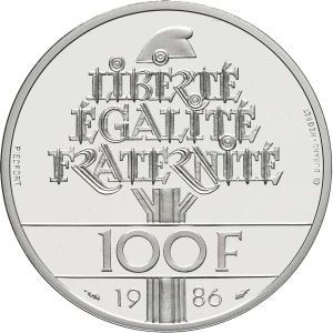 FRANCE - FRANCE Ve République (1958 à nos jours). Piéfort de 100 francs Liberté 1986, Pessac.…