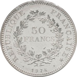 FRANCE - FRANCE Ve République (1958 à nos jours). Piéfort de 50 francs Hercule 1978, Pessac.…